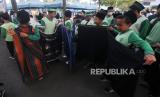 Sejumlah peserta bersiap memakai sarung saat mengikuti Jalan Sehat Sarungan di Salatiga, Jawa Tengah, Sabtu (4/2/2023). Jalan sehat menggunakan sarung yang diikuti 10 ribu peserta itu dalam rangka memperingati satu abad Nahdlatul Ulama serta menjaga tradisi sarung sebagai pakaian santri. ANTARA FOTO/Aloysius Jarot Nugroho/nym. (FOTO : Antara/Aloysius Jarot Nugroho)