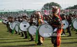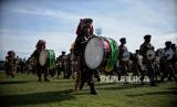 Banser menampilkan marching band dalam acara pembukaan Resepsi Satu Abad Nahdlatul Ulama di Stadion Gelora Delta Sidoarjo, Jawa Timur, Selasa (7/2/2023). Presiden bersama Wakil Presiden dan sejumlah Menteri Kabinet Indonesia Maju menghadiri acara Resepsi Puncak Satu Abad NU sekaligus meresmikan dan membuka kegiatan tersebut. Acara resepsi tersebut berlangsung selama 24 jam dengan diisi beragam kegiatan seperti membaca shalawat dan shalat qiyamul lail, karnaval kebudayaan nusantara, bazar UMKM, dan panggung hiburan rakyat yang akan diisi oleh sejumlah band dan musisi seperti Slank, Rhoma Irama dan Maher Zain. (FOTO : Republika/Thoudy Badai)