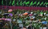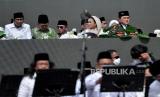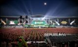Peserta saat menghadiri acara Resepsi Puncak Satu Abad di Stadion Gelora Delta Sidoarjo, Jawa Timur, Selasa (7/2/2023). Presiden bersama Wakil Presiden dan sejumlah Menteri Kabinet Indonesia Maju menghadiri acara Resepsi Puncak Satu Abad NU sekaligus meresmikan dan membuka kegiatan tersebut. Acara resepsi tersebut berlangsung selama 24 jam dengan diisi beragam kegiatan seperti membaca shalawat dan shalat qiyamul lail, karnaval kebudayaan nusantara, bazar UMKM, dan panggung hiburan rakyat yang akan diisi oleh sejumlah band dan musisi seperti Slank, Rhoma Irama dan Maher Zain. (FOTO : Republika/Thoudy Badai)
