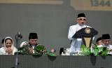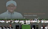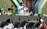 Rais Aam PBNU KH Miftachul Akhyar menyampaikan sambutan saat acara Resepsi Satu Abad Nahdlatul Ulama di Stadion Gelora Delta Sidoarjo, Jawa Timur, Selasa (7/2/2023). Presiden bersama Wakil Presiden dan sejumlah Menteri Kabinet Indonesia Maju menghadiri acara Resepsi Puncak Satu Abad NU sekaligus meresmikan dan membuka kegiatan tersebut. Acara resepsi tersebut berlangsung selama 24 jam dengan diisi beragam kegiatan seperti membaca shalawat dan shalat qiyamul lail, karnaval kebudayaan nusantara, bazar UMKM, dan panggung hiburan rakyat yang akan diisi oleh sejumlah band dan musisi seperti Slank, Rhoma Irama dan Maher Zain. (FOTO : Republika/Thoudy Badai)
