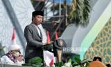 Ketum PBNU Yahya Cholil Staquf menyampaikan sambutan saat acara Resepsi Satu Abad Nahdlatul Ulama di Stadion Gelora Delta Sidoarjo, Jawa Timur, Selasa (7/2/2023). Presiden bersama Wakil Presiden dan sejumlah Menteri Kabinet Indonesia Maju menghadiri acara Resepsi Puncak Satu Abad NU sekaligus meresmikan dan membuka kegiatan tersebut. Acara resepsi tersebut berlangsung selama 24 jam dengan diisi beragam kegiatan seperti membaca shalawat dan shalat qiyamul lail, karnaval kebudayaan nusantara, bazar UMKM, dan panggung hiburan rakyat yang akan diisi oleh sejumlah band dan musisi seperti Slank, Rhoma Irama dan Maher Zain. (FOTO : Republika/Thoudy Badai)
