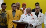 Sekjen PKS Habib Aboe Bakar Al-Habsyi bersama Wakil Ketua Umum Partai Golkar Ahmad Doli Kurnia memberikan keterangan usai melakukan pertemuan di Kantor DPP Partai Golkar, Jakarta, Selasa (7/2/2023).  (FOTO : Republika/Prayogi.)