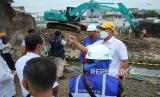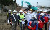 Sekda Kota Bandung Ema Sumarna meninjau progres pembangunan flyover dan jembatan penyeberangan orang (JPO) Ciroyom di Kecamatan Andir dan Cicendo, Kota Bandung, Rabu (8/2/2023). Proyek tersebut ditargetkan selesai Juli 2023 mendatang. Saat ini progres pembangunan sudah mencapai 26 persen. Adanya flyover dan JPO Ciroyom, diharapkan menjadi salah satu solusi mengatasi kemacetan di Kota Bandung. (FOTO : Edi Yusuf/Republika)