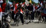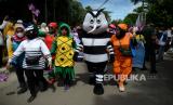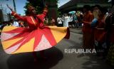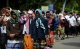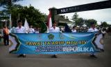 Sejumlah peserta mengikuti pawai Taaruf Musabaqah Tilawatil Quran (MTQ) Ke-XIV Kota Tangerang Selatan (Tangsel), Rabu (8/2/2023). (FOTO : Republika/Prayogi.)