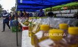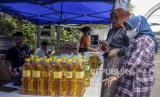Warga membeli bahan pokok di Lapak Pangan Murah di halaman Kantor DKPP Kota Bandung, Jalan Arjuna, Cicendo, Kota Bandung, Provinsi Jawa Barat, Kamis (9/2/2023). Dinas Ketahanan Pangan dan Pertanian (DKPP) Kota Bandung menggelar lapak pangan murah yang menjual berbagai bahan pokok. Lapak Pangan Murah tersebut merupakan salah satu upaya pengendalian inflasi di Kota Bandung. (FOTO : ABDAN SYAKURA/REPUBLIKA)