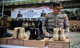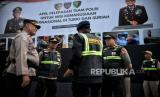 Personel Kepolisian bersiap mengikuti apel kesiapan pasukan sebelum dikirim ke lokasi bencana gempa Turki dan Suriah di Lapangan Baharkam Mabes Polri, Jakarta, Kamis (9/2/2023). Mabes Polri akan memberangkatkan sebanyak 26 personel terdiri dari tim medis, DVI, dan K9 yang tergabung dalam satgas misi kemanusiaan untuk membantu korban gempa Turki. (FOTO : Republika/Thoudy Badai)