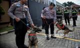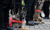 Personel Kepolisian mengikuti apel kesiapan pasukan sebelum dikirim ke lokasi bencana gempa Turki dan Suriah di Lapangan Baharkam Mabes Polri, Jakarta, Kamis (9/2/2023). Mabes Polri akan memberangkatkan sebanyak 26 personel terdiri dari tim medis, DVI, dan K9 yang tergabung dalam satgas misi kemanusiaan untuk membantu korban gempa Turki. (FOTO : Republika/Thoudy Badai)