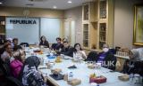 Compliance Director and Corporate Secretary Bank Jago Tjit Siat Fun (ketiga kanan) bersama Head of Sharia Business Develeopment & Product Solution Bank Jago Waasi B. Sumintardja (keempat kanan), Head of Sharia Business Development & Product Solution Bank Jago Agung Lesmana (kedua kanan) dan Head of Sharia Customer Value Nur Fajriah Rachmah (kanan) memberikan paparan saat berkunjung ke kantor Republika di Jakarta, Kamis (23/2/2023). Kunjungan tersebut untuk memperkenalkan profil dan fitur dari Bank Jago. (FOTO : Republika/Putra M. Akbar)