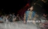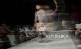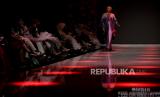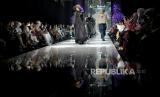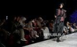 Model mengenakan busana karya desainer Deden Siswanto pada gelaran Muslim Fashion Festival (MUFFEST+) 2023 di The Westin Jakarta, Selasa (7/3/2023). Peragaan busana Muslim tersebut kembali digelar di Jakarta dengan tema Unlock Global Opportunities with MUFFEST+ dengan menyajikan karya dari jenama lokal, 200 desainer lokal, serta 8 desainer dari negara tetangga seperti Singapura, Laos, Kamboja, Brunei dan Thailand atas dukungan ASEAN Fashion Designers Showcase (AFDS). (FOTO : Republika/Thoudy Badai)