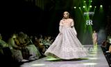 Model mengenakan busana karya desainer Rya Baraba pada gelaran Muslim Fashion Festival (MUFFEST+) 2023 di The Westin Jakarta, Selasa (7/3/2023). Peragaan busana Muslim tersebut kembali digelar di Jakarta dengan tema Unlock Global Opportunities with MUFFEST+ dengan menyajikan karya dari jenama lokal, 200 desainer lokal, serta 8 desainer dari negara tetangga seperti Singapura, Laos, Kamboja, Brunei dan Thailand atas dukungan ASEAN Fashion Designers Showcase (AFDS). (FOTO : Republika/Thoudy Badai)