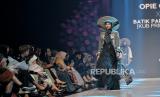 Model mengenakan busana karya desainer Opie Ovie pada gelaran Muslim Fashion Festival (MUFFEST+) 2023 di The Westin Jakarta, Selasa (7/3/2023). Peragaan busana Muslim tersebut kembali digelar di Jakarta dengan tema Unlock Global Opportunities with MUFFEST+ dengan menyajikan karya dari jenama lokal, 200 desainer lokal, serta 8 desainer dari negara tetangga seperti Singapura, Laos, Kamboja, Brunei dan Thailand atas dukungan ASEAN Fashion Designers Showcase (AFDS). (FOTO : Republika/Thoudy Badai)