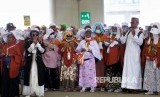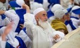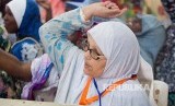 Jamaah haji indonesia berdoa usai melempar Jumrah Aqabah di Jamarat, Mina, Arab Saudi, Senin (12/8). (FOTO : STR/EPA-EFE)