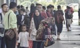 REPUBLIKA.CO.ID, JAKARTA -- Suasana keramaian pemudik di Terminal Pulogebang, Jakarta Timur, Selasa (28/5).