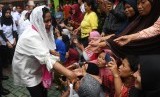 REPUBLIKA.CO.ID, TANGERANG - Rombongan Ibu Negara Iriana Joko Widodo bersama Organisasi Aksi Solidaritas Kabinet Kerja (OASE) Indonesia Maju mengunjungi korban banjir di Perumahan Periuk Jaya, Kecamatan Periuk, Kota Tangerang, Banten, pada Jumat (3/1).