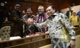 Pembahasan Persiapa Pemilu. Mendagri Tjahjo Kumolo, Ketua Bawaslu Abhan, Ketua KPU Arief Budiman, dan Wakil Ketua Komisi II Herman Khaeron (dari kiri) berfoto sebelum Rapat Kerja dengan Komisi II DPR RI di Komplek Parlemen Senayan, Jakarta, Kamis (6/12). (FOTO : Republika/ Wihdan)