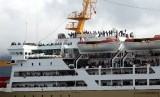 REPUBLIKA.CO.ID, AMBON -- Pemudik tujuan Pelabuhan Bau-bau (Sulawesi Tenggara) dan Makassar (Sulawesi Selatan) naik ke atas KM Ciremai yang akan berangkat dari Pelabuhan Yos Sudarso Ambon, Maluku, Kamis (30/5/2019).