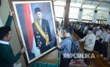Para pegawai PT Dirgantara Indonesia (PT DI) Bandung dan masyarakat menggelar doa bersama dan shalat ghaib atas wafatnya Presiden RI ke-3 Bacharuddin Jusuf Habibie (BJ Habibie), di Masjid Habiburrahman, Komplek PT DI, Kota Bandung, Kamis (12/9). (FOTO : Republika/Edi Yusuf)