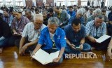 Para pegawai PT Dirgantara Indonesia (PT DI) Bandung dan masyarakat melakukan shalat ghaib atas wafatnya Presiden RI ke-3 Bacharuddin Jusuf Habibie (BJ Habibie), di Masjid Habiburrahman, Komplek PT DI, Kota Bandung, Kamis (12/9). (FOTO : Republika/Edi Yusuf)