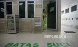 Petugas memeriksa mushola di SPBU 44 521 08 jalur Pantura, Tegal, Jateng, Selasa (12/6). (FOTO : Republika/Prayogi)