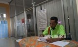 Petugas mendata extra bed di SPBU 44 521 08 jalur Pantura, Tegal, Jateng, Selasa (12/6). (FOTO : Republika/Prayogi)