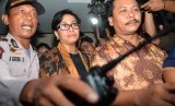 Mantan Menteri Keuangan Sri Mulyani Indrawati berjalan dikawal petugas usai bersaksi dalam persidangan kasus Bank Century dengan terdakwa Budi Mulya di Pengadilan Tipikor, Jakarta, Jumat (2/5). (Republika/Agung Supriyanto)
