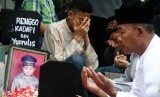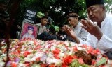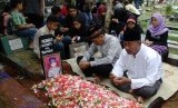 REPUBLIKA.CO.ID, JAKARTA -- Sejumlah kerabat tengah memanjatkan doa saat pemakaman almarhum Renggo Kadapi di TPU Kampung Asem, Halim, Jakarta Timur, Ahad (4/5).