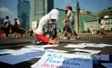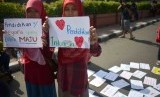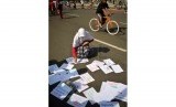 Mahasiswa BEM UNJ menggelar aksi menuntut pendidikan bermutu saat Hari Bebas Kendaraan Bermotor di Jakarta, Ahad (4/5). (Republika/Agung Supriyanto)