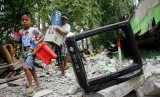 REPUBLIKA.CO.ID, JAKARTA -- Petugas Satpol PP membongkar puluhan bangunan liar di pinggiran Kali Ciliwung, Jakarta Pusat, Rabu (7/5).