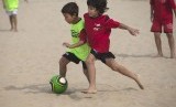 REPUBLIKA.CO.ID, RIO DE JANEIRO -- Sejumlah anak Brasil berlatih sepak bola di pantai Ipanema, Rio de Janeiro, Brasil, Rabu (7/5).