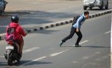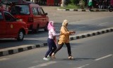 REPUBLIKA.CO.ID, JAKARTA -- Sejumlah pejalan kaki menyeberang jalan di Jalan Lenteng Agung Raya, Jakarta Selatan, Jumat (9/5).
