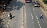Sejumlah pejalan kaki menyeberang jalan di Jalan Lenteng Agung Raya, Jakarta Selatan, Jumat (9/5). (foto: Raisan Al Farisi)