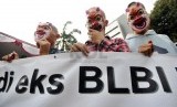 REPUBLIKA.CO.ID, JAKARTA -- Sejumlah massa berunjuk rasa menuntut penuntasan kasus BLBI di depan Gedung Komisi Pemberantasan Korupsi (KPK), Jakarta, Senin (12/5).