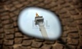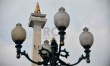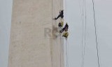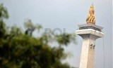 REPUBLIKA.CO.ID, JAKARTA -- Petugas membersihkan tugu Monumen Nasional di Jakarta Pusat, Senin (12/5).