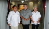REPUBLIKA.CO.ID, JAKARTA -- Capres dari Partai Gerindra Prabowo Subianto bersama Ketua Umum PAN Hatta Rajasa bertemu Presiden Susilo Bambang Yudhoyono di Kantor Presiden, Jakarta, Selasa (13/5).