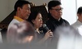 Ketua Umum Hanura Wiranto (kiri), Ketua Bapilu PDIP Puan Maharani (tengah), dan Sekjen PDIP Tjahjo Kumolo usai pertemuan dengan Ketua Umum PDIP Megawati Soekarnoputri di Menteng, Jakarta, Sabtu (17/5). (Republika/Aditya Pradana Putra)