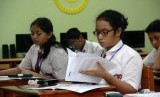 REPUBLIKA.CO.ID, JAKARTA -- Siswa SDN Menteng 1 mengikuti ujian untuk mata pelajaran Bahasa Indonesia pada hari pertama pelaksanaan Ujian Sekolah (US) tingkat Sekolah Dasar (SD) di Jakarta Pusat, Senin (19/5).