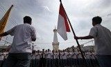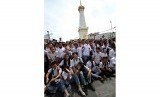Para siswa tersebut tidak merayakan kelulusan dengan coret coret seragam tetapi denga berfoto bersama dengan latar belakang Tugu Yogyakarta sebagai kenang-kenangan.