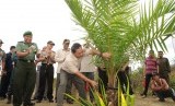 REPUBLIKA.CO.ID, PELALAWAN -- Menteri Kehutanan Zulkifli Hasan secara simbolis menerima pengembalian lahan dari masyarakat, yang secara sukarela mengembalikan lahan seluas 3000 hektar, dan sebagian besar telah mereka tanami pohon sawit kepada negara di Bukit Apolo, kawasan taman nasional Tesso Nilo, Provinsi Riau, Kamis (22/5).