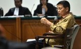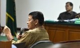Mantan Menteri Luar Negeri Hassan Wirajuda menjadi saksi dalam sidang perkara dengan terdakwa Sudjadnan Parnohadiningrat di Pengadilan Tipikor, Jakarta, Rabu (28/5). (Republika/Agung Supriyanto)