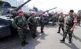 Dirlatgab TNI Letjen TNI Lodewijk F. Paulus (kanan) menginspeksi keiapan pasukan dan alusista TNI Angkatan Laut di Markas Koarmatim, Surabaya, Jawa Timur, Rabu (28/5). (Republika/Aditya Pradana Putra)