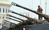 Prajurit Marinir TNI AL mempersiapkan tank jenis amfibi jelang Inspeksi Kesiapan Pasukan dan alutsista yang digelar di Markas Koarmatim, Surabaya, Jawa Timur, Rabu (28/5). (Republika/Aditya Pradana Putra)