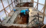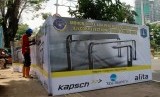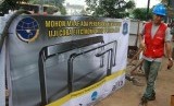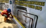 REPUBLIKA.CO.ID, JAKARTA -- Pekerja memasang papan penutup saat melakukan pengeboran untuk pemasangan gate (gerbang) sensor On Board Unit (OBU) Elektronic Road Pricing (ERP) di Jalan Sudirman, Jakarta, Jumat (30/5).