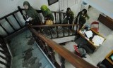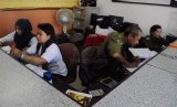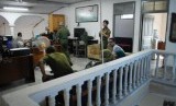 Pegawai Kecamatan Ciracas berkantor di rumah warga yang dikontrak sebagai kantor sementara di Jalan Asem, Kelapa Dua Wetan, Jakarta Timur, Rabu (4/6). (Republika/Rakhmawaty La'lang)