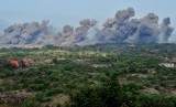Ledakan-ledakan timbul akibat peluru kendali dari sejumlah pesawat tempur milik TNI AU dalam latihan operasi darat gabungan di Pusat Latihan Pertempuran Marinir V Baluran, Asembagus, Situbondo, Rabu (3/6). (Republika/Aditya Pradana Putra)