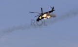 Helikopter tempur MI35P Puspenerbad TNI AD menembakkan peluru kendalinya dalam latihan operasi darat gabungan di Pusat Latihan Pertempuran Marinir V Baluran, Asembagus, Situbondo, Rabu (3/6). (Republika/Aditya Pradana Putra)