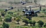 Helikopter Bell 412 Puspenerbad TNI AD mengangkut prajurit dalam latihan operasi darat gabungan di di Pusat Latihan Pertempuran Marinir V Baluran, Asembagus, Situbondo, Rabu (3/6). (Republika/Aditya Pradana Putra)