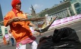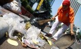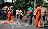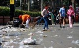 REPUBLIKA.CO.ID, JAKARTA -- Sejumlah petugas membersihkan sisa sampah yang berserakan di kawasan Car Free Day di Bundaran HI, Jakarta Pusat, Ahad (8/6).