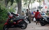 REPUBLIKA.CO.ID, JAKARTA -- Kendaraan roda empat dan roda dua terparkir di jalan dan trotoar di luar kawasan Monumen Nasional (Monas) saat acara Pekan Rakyat Jakarta, Jakarta Pusat, Rabu (11/6).