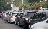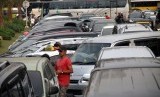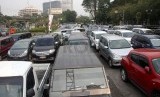 Kurangnya lahan parkir PRJ Monas, membuat warga memarkir kendaraannnya di jalan dan trotoar yang membuat sejumlah kendaraan yang melintas menjadi macet.