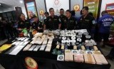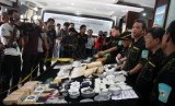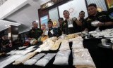 REPUBLIKA.CO.ID, JAKARTA -- Sejumlah tersangka dan barang bukti ditunjukkan saat gelar perkara kasus penyelundupan narkotika asal India di Direktorat IV Tindak Pidana Narkotika Mabes Polri, Jakarta, Kamis (12/6).